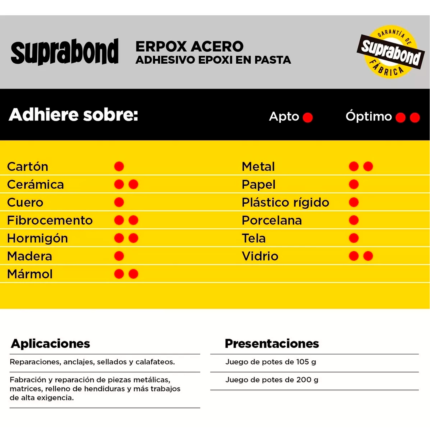 ADHESIVO EPOXI ERPOX ACERO X 200gr SOLDADURA SUPRABOND