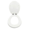 - Evite limpiar el asiento o los herrajes con lanas de aceros, esponjas metálicas u otro tipo de abrasivos. Tampoco utilice productos que contengan lavandinas, ácidos o químicos como los limpiadores para sanitarios, o cremosos abrasivos.