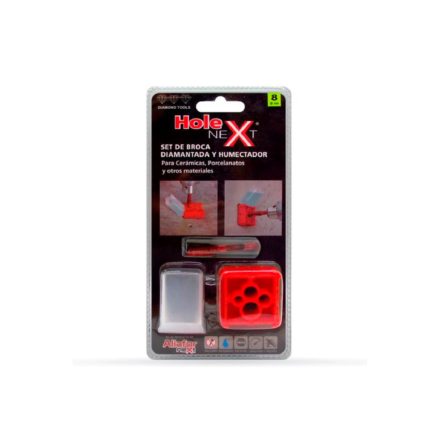 BROCA DIAMANTADA 8mm + HUMECTADOR + BASES ALIAFOR HOLE NEXT