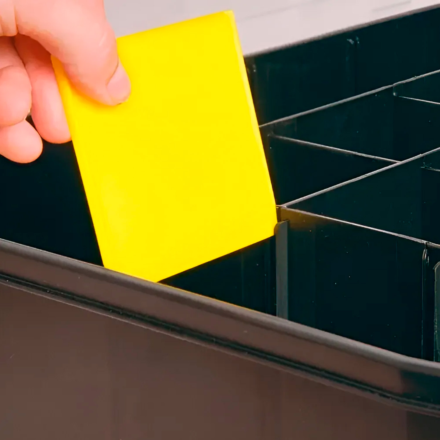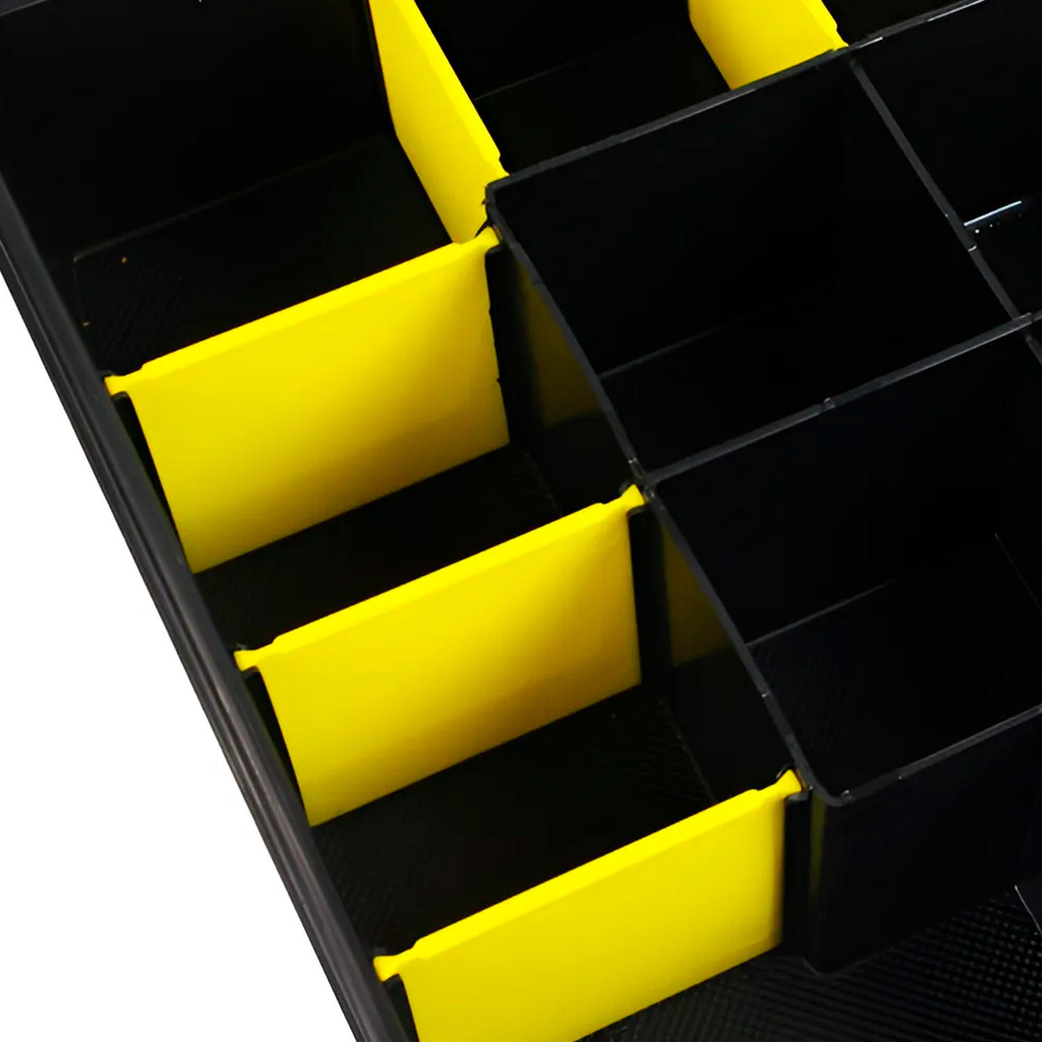 La Caja Gavetero Organizador Stanley Sortmaster STST14026 es la solución ideal para mantener tus herramientas y accesorios ordenados de manera eficiente. Con un diseño funcional en color negro y amarillo, este organizador ofrece 17 compartimentos que facilitan la clasificación y el acceso rápido a tus elementos esenciales.