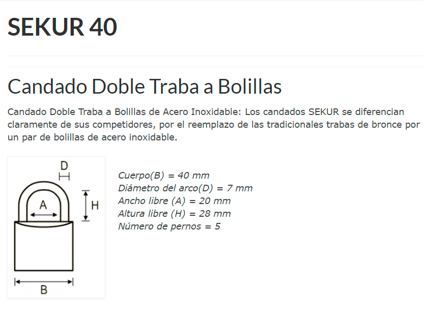 Candado Doble Traba a Bolillas de Acero Inoxidable: Los candados SEKUR se diferencian claramente de sus competidores, por el reemplazo de las tradicionales trabas de bronce por un par de bolillas de acero inoxidable.