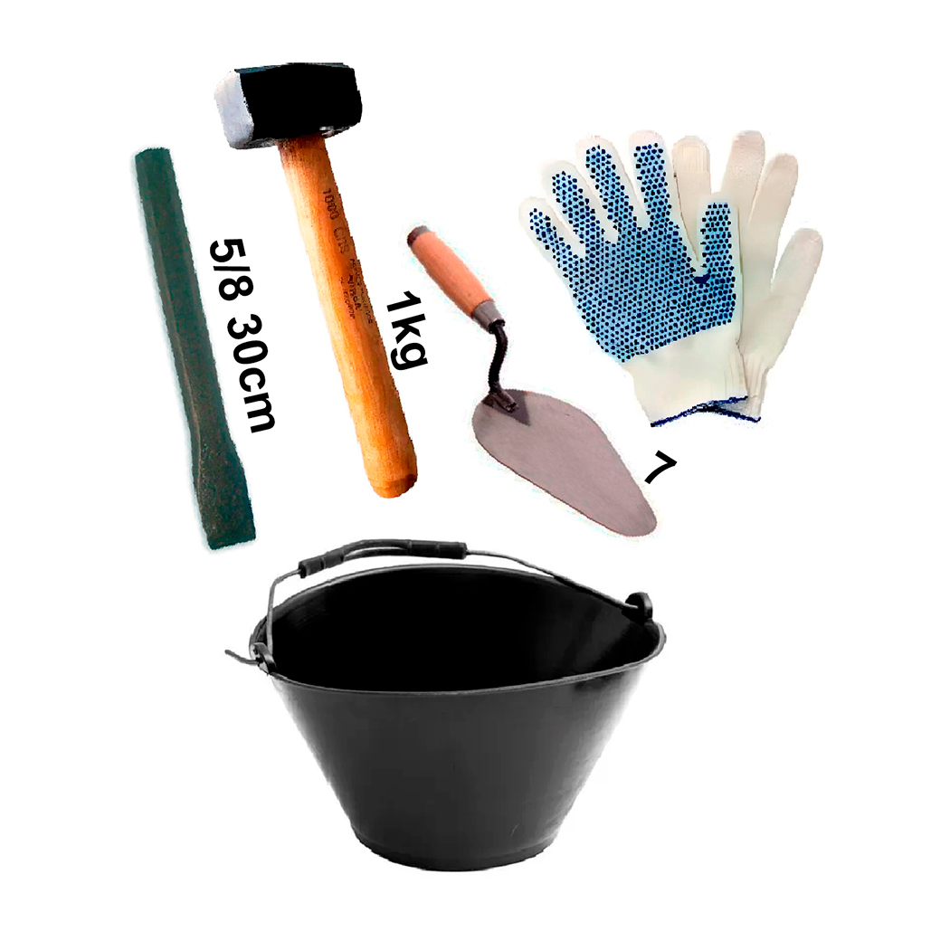 COMBO KIT ALBAÑIL MAZA CUCHARA BALDE CORTAFIERRO GUANTES