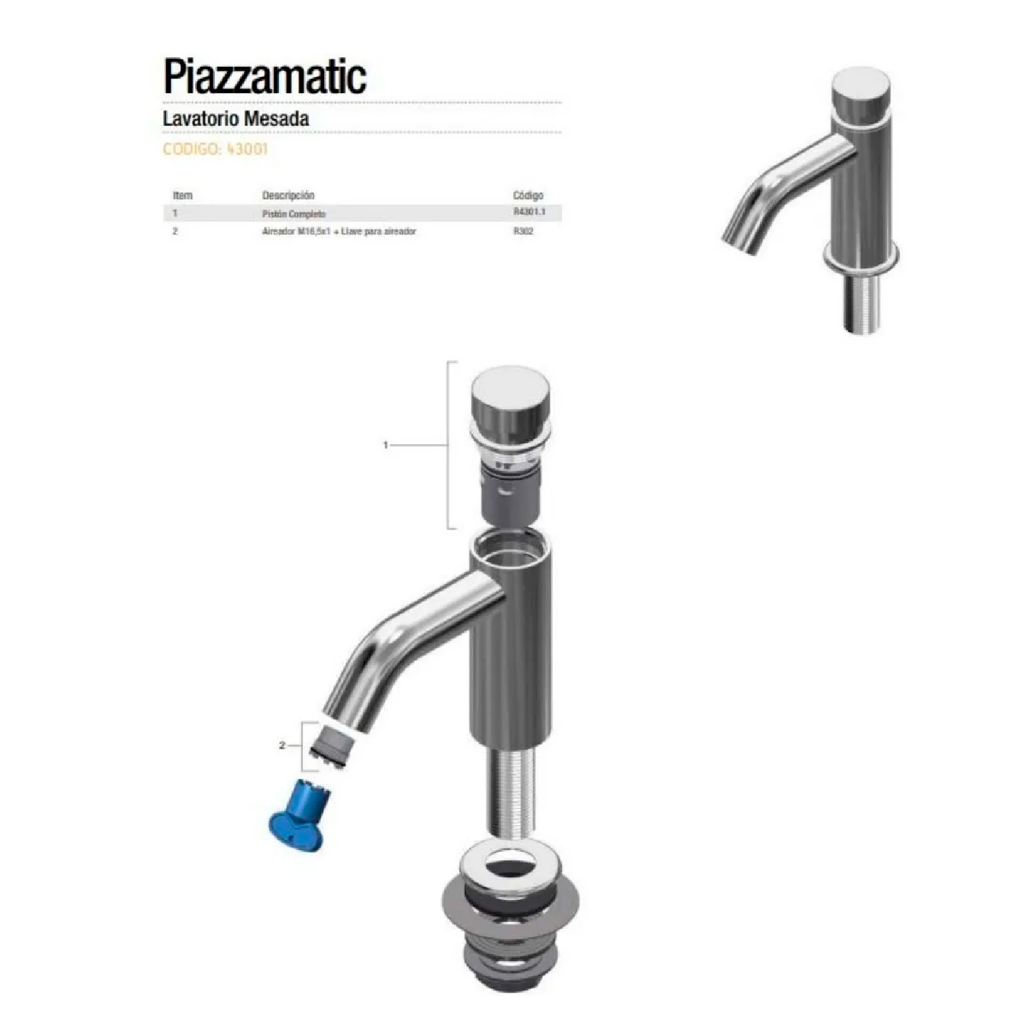 GRIFERÍA LAVATORIO BAÑO CIERRE TEMPORIZADO PIAZZAMATIC 43001