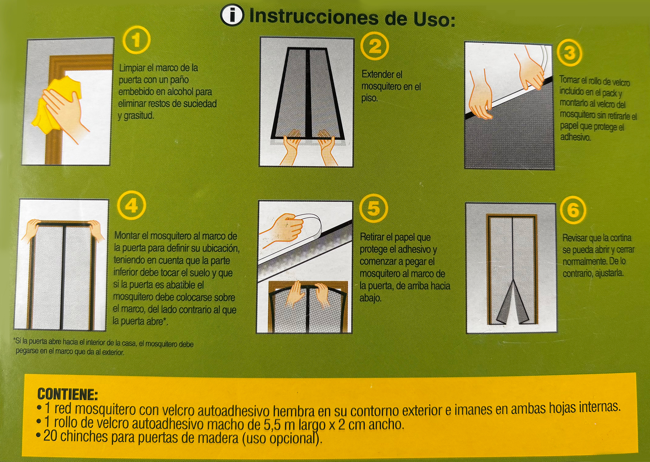 Fabricado en poliéster de alta calidad, este mosquitero es resistente y duradero, garantizando una protección efectiva. Sus dimensiones de 1 m de largo y 2.2 m de ancho lo hacen adecuado para diversas puertas, asegurando un ajuste perfecto.