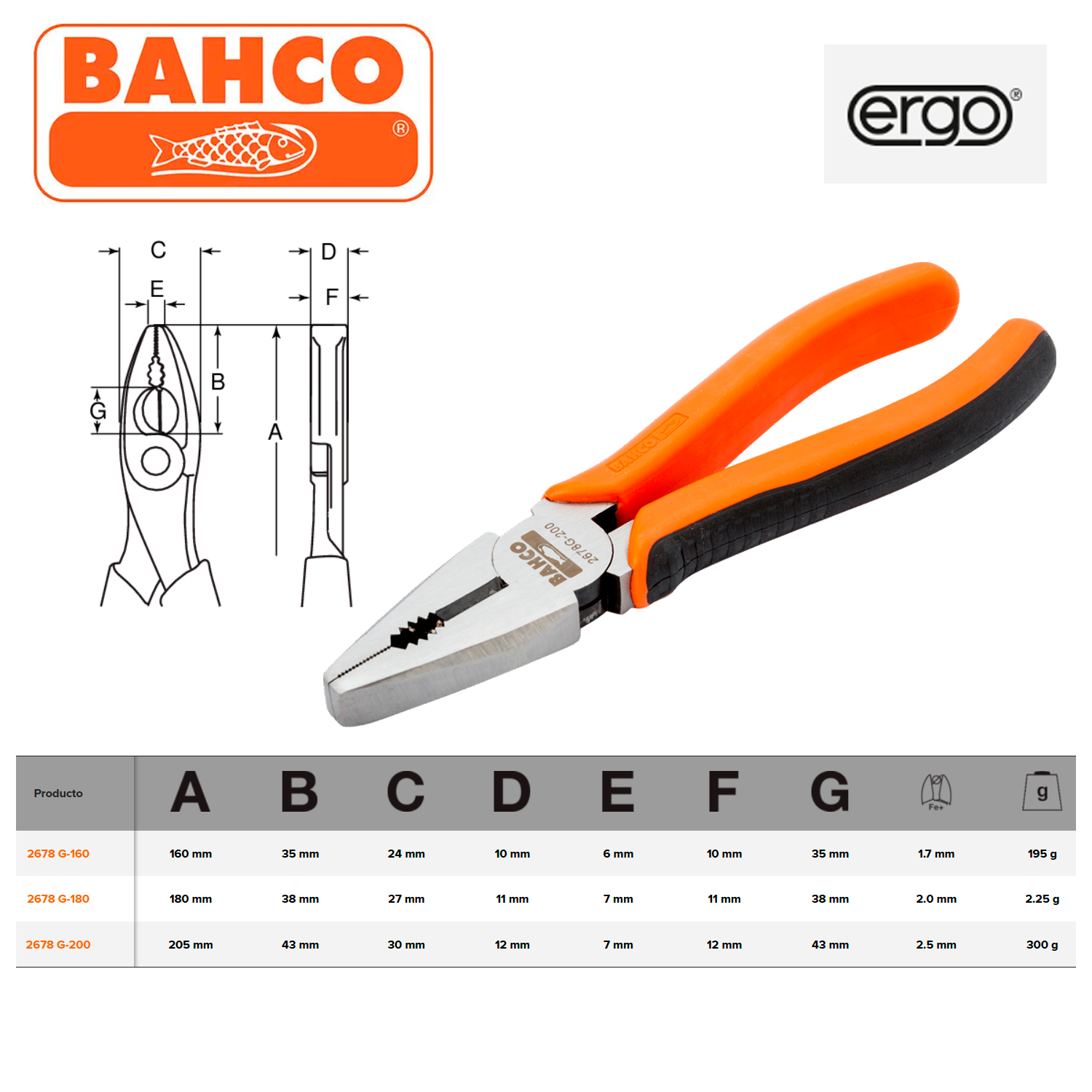 PINZA ALICATE UNIVERSAL 160MM BAHCO ERGO 2678G-160