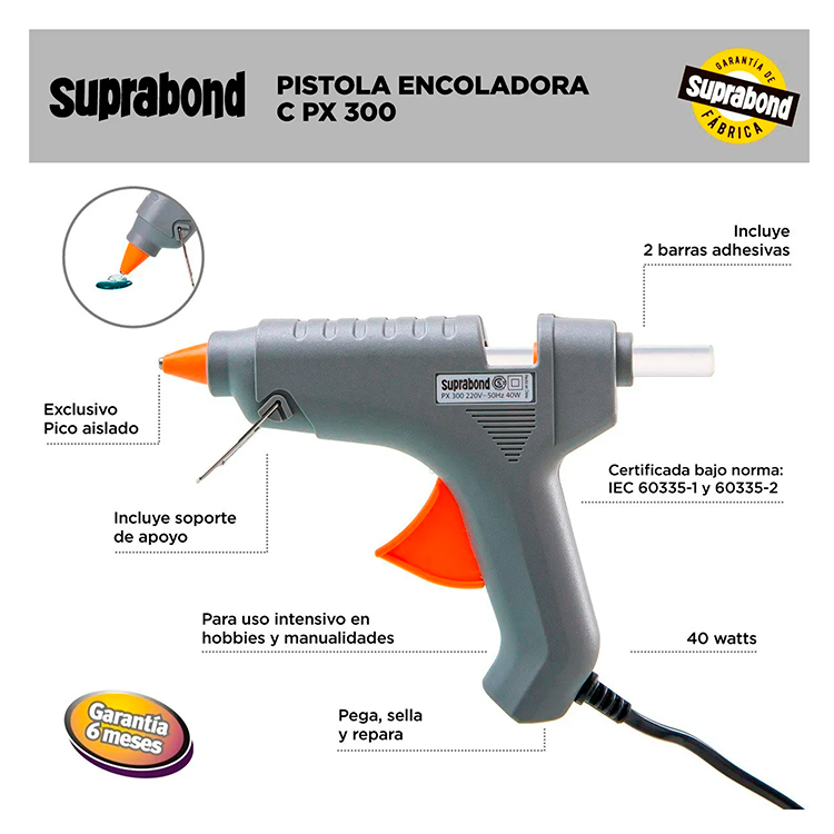 Pistola Encoladora para Barras de Silicona – Suprabond PX 300 Gris