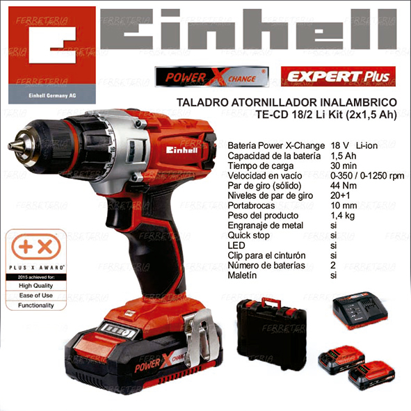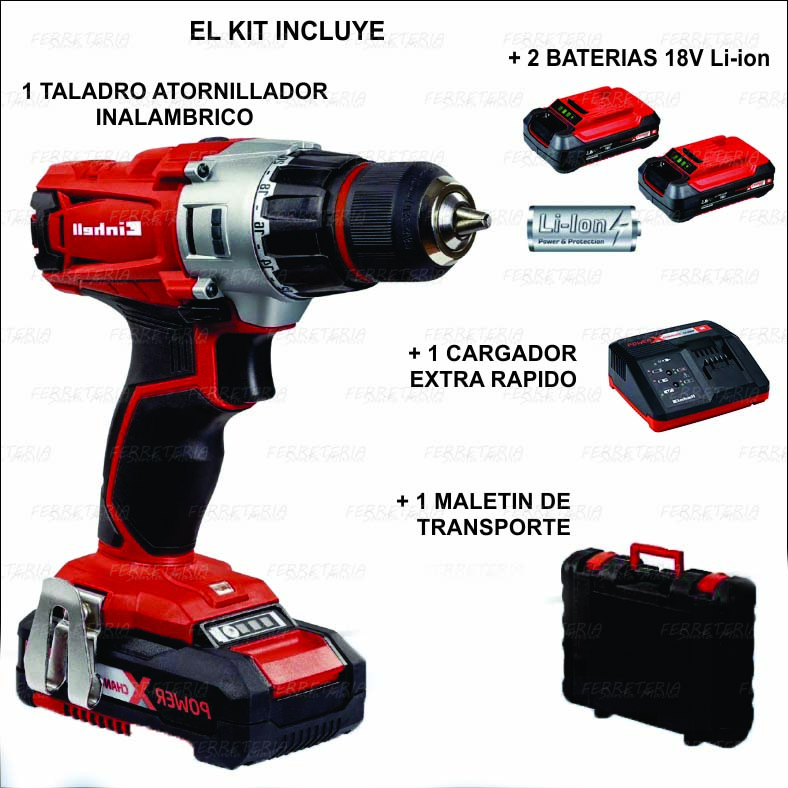TALADRO ATORNILLADOR INALAMBRICO KIT INHELL MOD. TE-CD 18LI + 2 BATERIAS DE 1,5Ah + CARGADOR + MALETIN