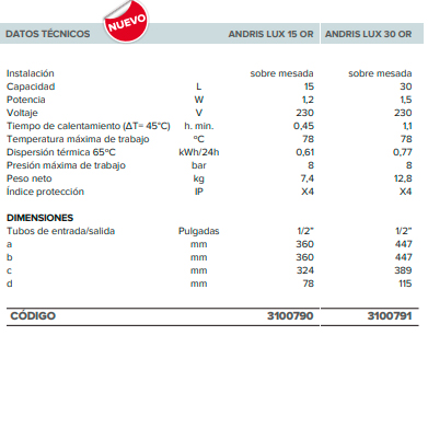 Modelo: ANDRIS LUX 30 litros