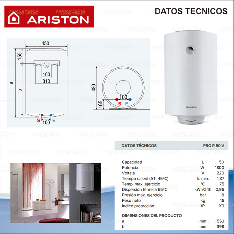 TERMOTANQUE ELECTRICO ARISTON PRO R 50 LITROS
